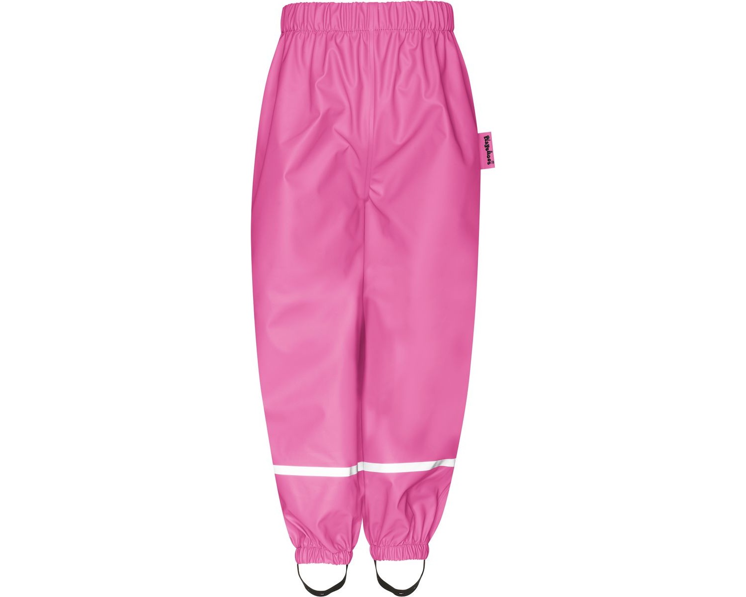 Pro děti, které se nechtějí obejít bez hřiště ani za deštivého počasí. Kalhoty do deště jsou ideální pro převlékání, takže  na kalhoty nebo teplé spodní prádlo dobře padnou. Pružný pásek v pasek na regulaci pasu, který lze odepnout pomocí knoflíku, zajišťuje dokonalé uchycení v gumových botách. Několik reflektorů zajišťuje lepší viditelnost ve tmě nebo špatném počasí, a tím zvyšuje úroveň bezpečnosti.