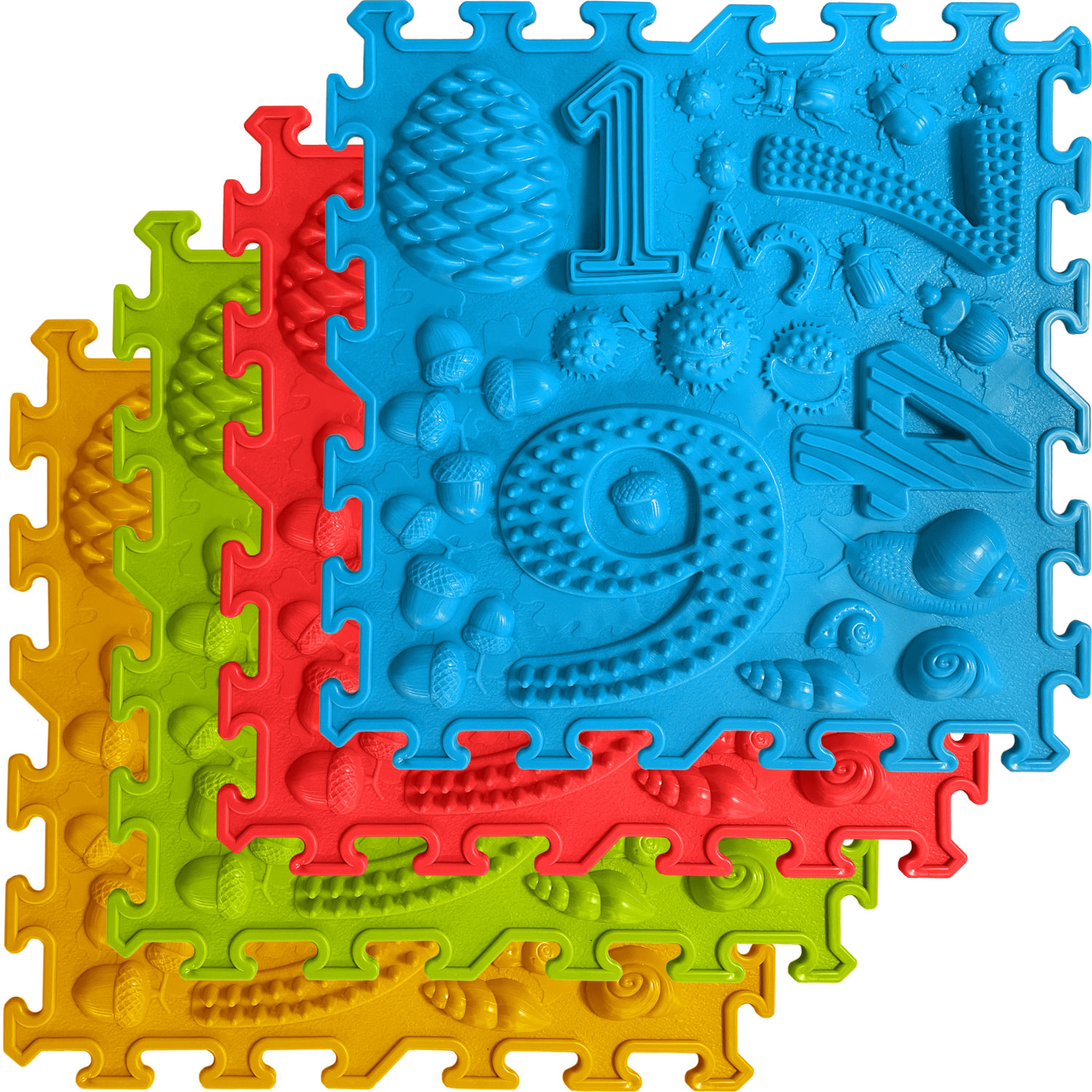 Široká škála textur a barev podložek zvyšuje představivost, zlepšuje krevní oběh, podporuje korekci plochých nohou, pomáhá odstraňovat otoky nohou a rozvíjí vestibulární systém.