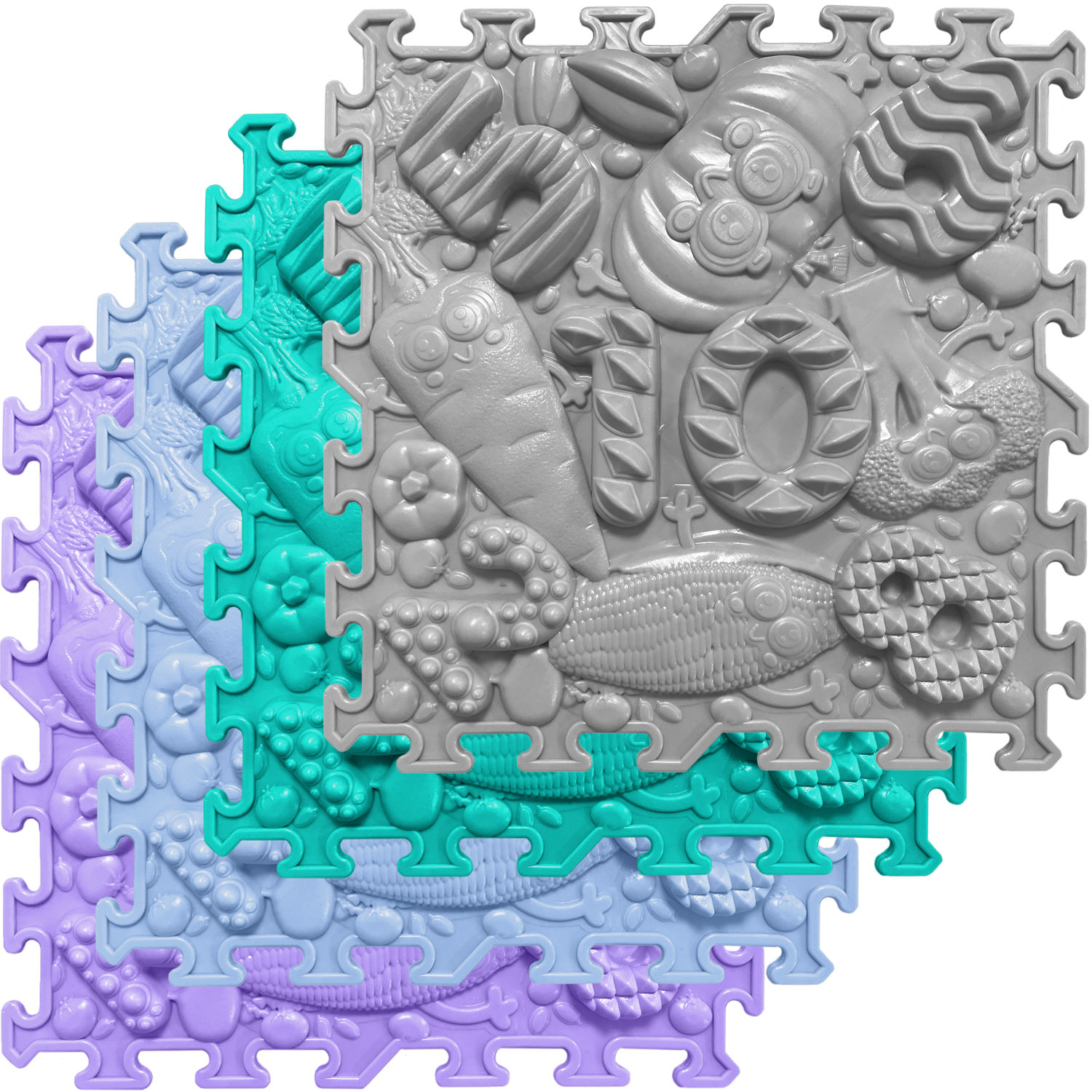 Široká škála textur a barev podložek zvyšuje představivost, zlepšuje krevní oběh, podporuje korekci plochých nohou, pomáhá odstraňovat otoky nohou a rozvíjí vestibulární systém.