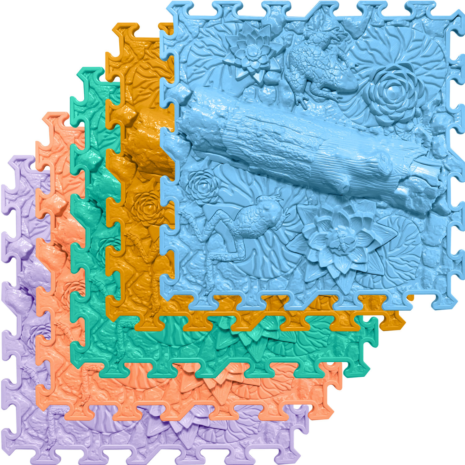 Široká škála textur a barev podložek zvyšuje představivost, zlepšuje krevní oběh, podporuje korekci plochých nohou, pomáhá odstraňovat otoky nohou a rozvíjí vestibulární systém.