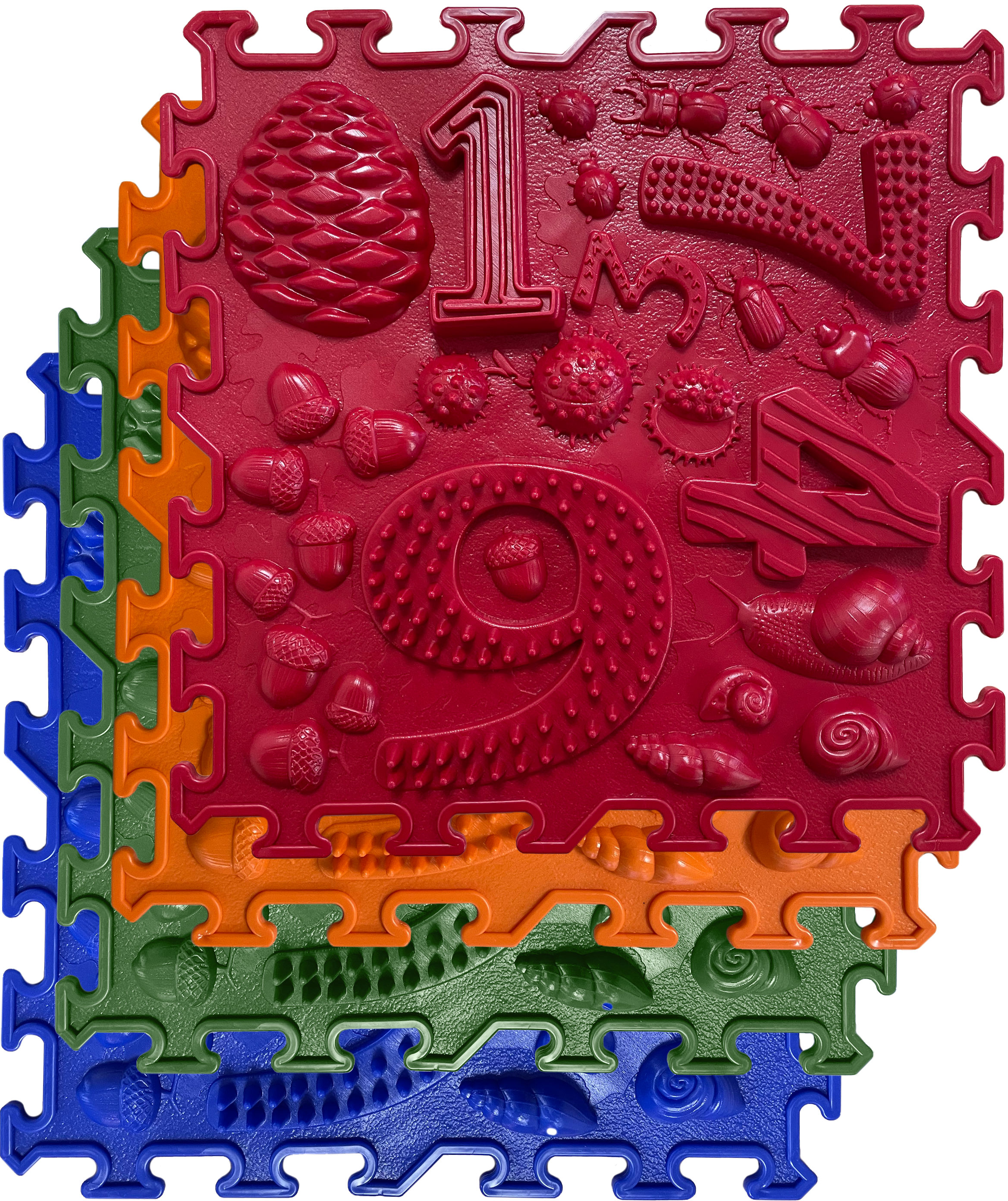 Široká škála textur a barev podložek zvyšuje představivost, zlepšuje krevní oběh, podporuje korekci plochých nohou, pomáhá odstraňovat otoky nohou a rozvíjí vestibulární systém.