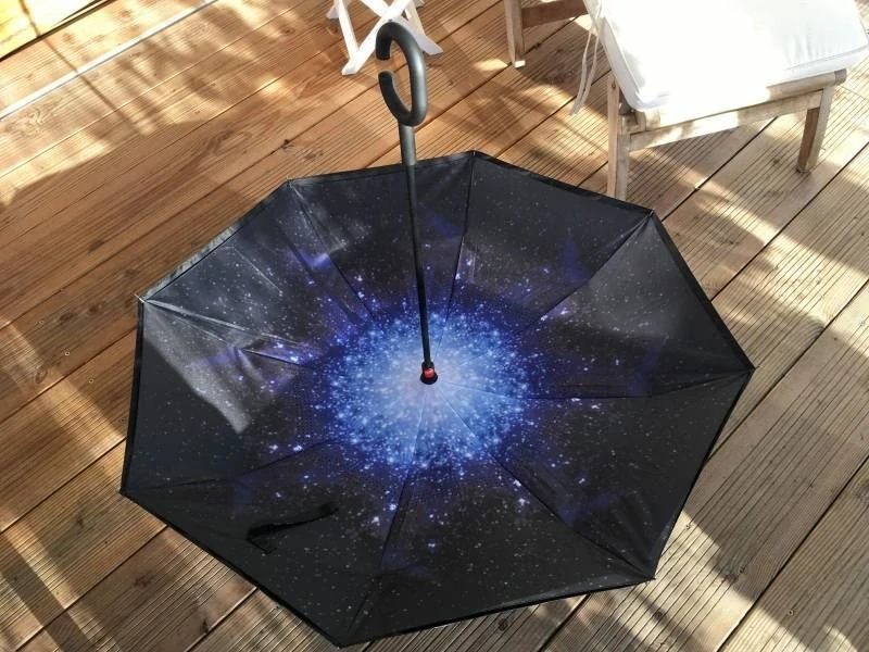 S tímto deštníkem už nikdy nezmokenete a ještě se budete cítit pohodlněji! Určitě znáte situaci, když nalézáte do auta, a než se vám to s deštníkem povede, tak jste celí promočení! S obráceným systémem otevírání a zavíraní se vám toto nestane.